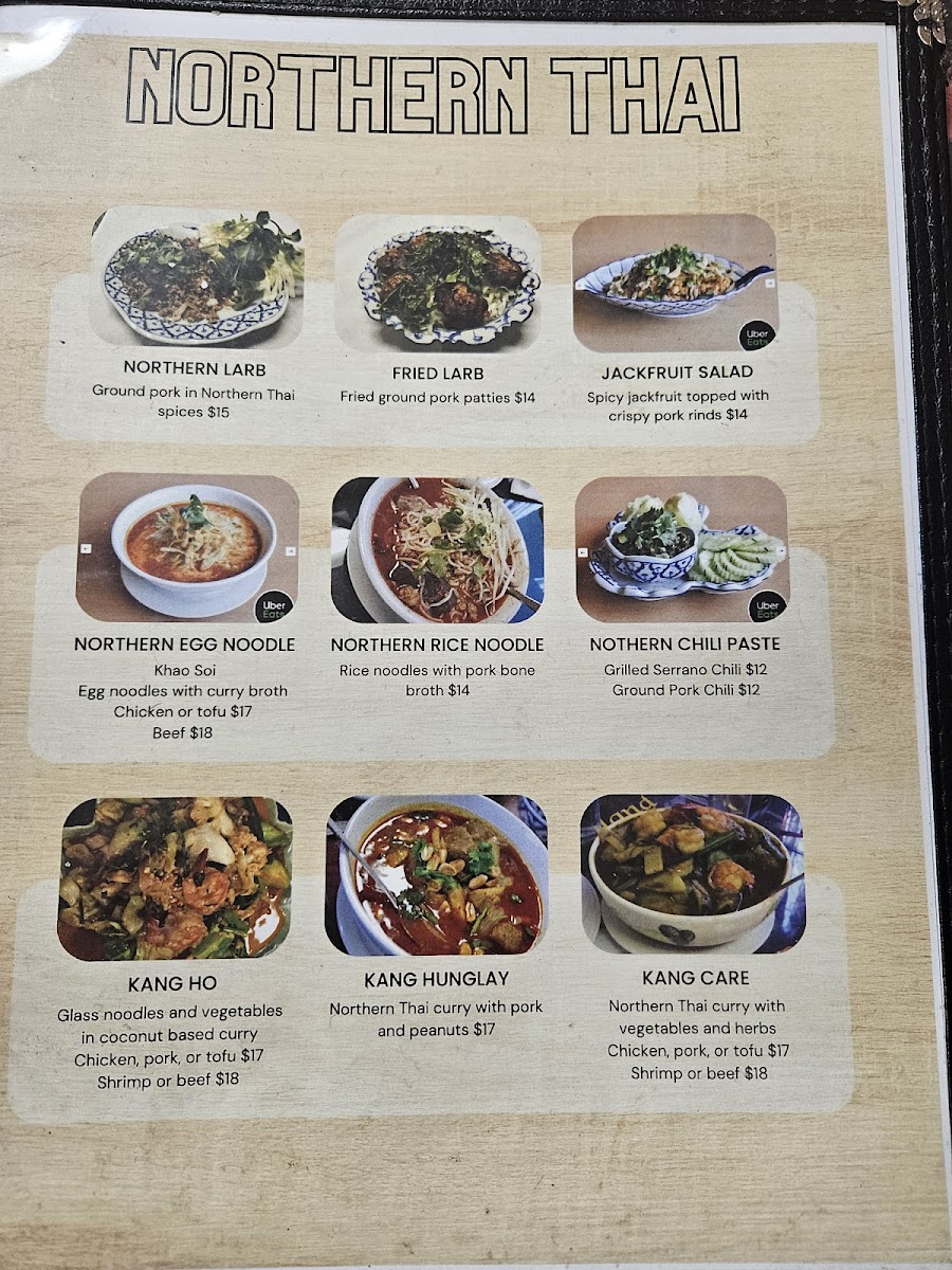 Northern Thai glass noodle blends with choice of beef, chicken, pork, or shrimp, seasoned with aromatic herbs.